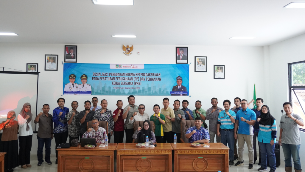 Pelaihari – Dinas Tenaga Kerja dan Perindustrian Kabupaten Tanah Laut melalui Bidang Hubungan Industrial dan Jaminan Sosial Tenaga Kerja (HIJSTK) menggelar kegiatan Sosialisasi Penegakan Norma Ketenagakerjaan pada Peraturan Perusahaan (PP) dan Perjanjian Kerja Bersama (PKB) pada Kamis, 25 September 2025, bertempat di Aula Disnakerind Tala.