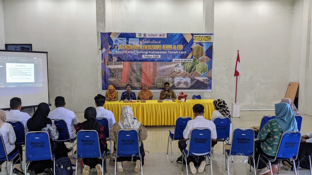 Pelaihari, 21 Juli 2025 – Dinas Tenaga Kerja dan Perindustrian (Disnakerind) Kabupaten Tanah Laut melalui Bidang Perindustrian melaksanakan kegiatan sosialisasi pendataan Industri Kecil Menengah (IKM) dan Industri Besar (IB) yang dilaksanakan di Aula Kantor Kecamatan Jorong, pada hari Senin (21/7). Kegiatan ini menjadi salah satu upaya strategis dalam memperkuat basis data industri daerah untuk mendukung perumusan kebijakan yang lebih tepat sasaran.