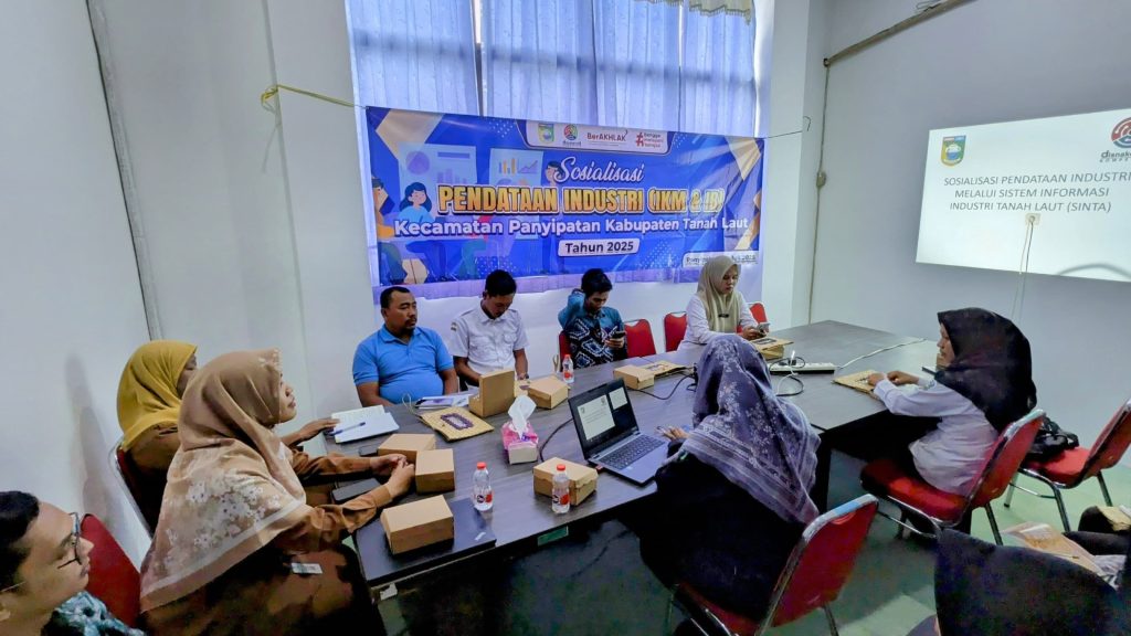 Pelaihari, 22 Juli 2025 – Dinas Tenaga Kerja dan Perindustrian (Disnakerind) Kabupaten Tanah Laut melalui Bidang Perindustrian melaksanakan kegiatan sosialisasi pendataan Industri Kecil Menengah (IKM) dan Industri Besar (IB) yang dilaksanakan di Aula Kantor Kecamatan Panyipatan, pada hari Selasa (22/7). Kegiatan ini menjadi salah satu upaya strategis dalam memperkuat basis data industri daerah untuk mendukung perumusan kebijakan yang lebih tepat sasaran.