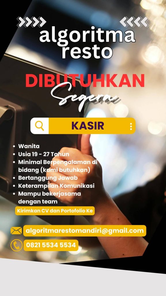 Halo #Rekanaker! Informasi lowongan kerja terbaru datang dari industri kuliner untuk Anda yang berada di wilayah Tanah Laut dan sekitarnya. Saat ini, Algoritma Resto sedang membuka rekrutmen dan membutuhkan segera kandidat untuk mengisi posisi sebagai Kasir.