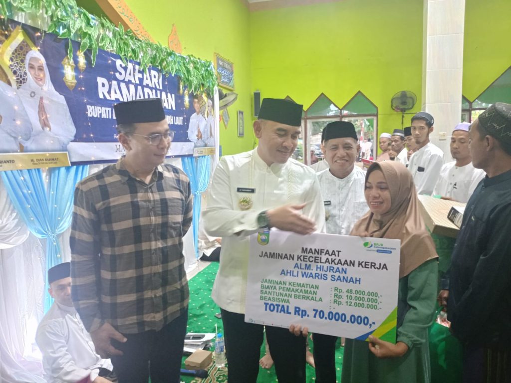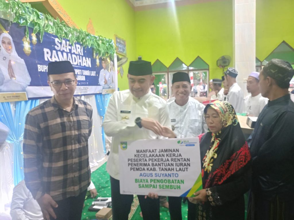 Bersamaan dengan kegiatan Safari Ramadan, pada hari Jumat tanggal 14 Maret 2025, bertempat di Masjid AL MUHAJIRIN, Desa Batu Mulya Kecamatan Panyipatan(14/03/2025), Bupati dan Wakil Bupati Tanah Laut (H. Rahmat Trianto dan H. Muhammad Zazuli) bersama Kepala BPJS Ketenagakerjaan Tanah Laut (Desmon Renhat Jaminansen) telah memberikan secara simbolis manfaat Jaminan Kecelakaan Kerja (JKK) dan santunan kematian akibat Kecelakaan Kerja.